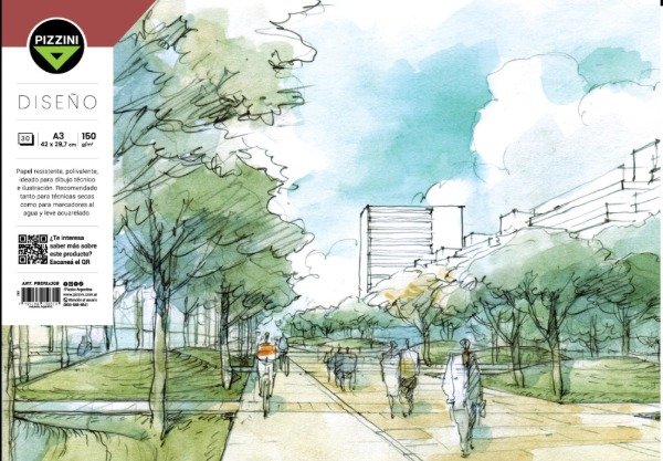 El Block Pizzini Diseño es un papel resistente y polivalente, pensado para acompañar tanto el dibujo técnico como la ilustración artística.